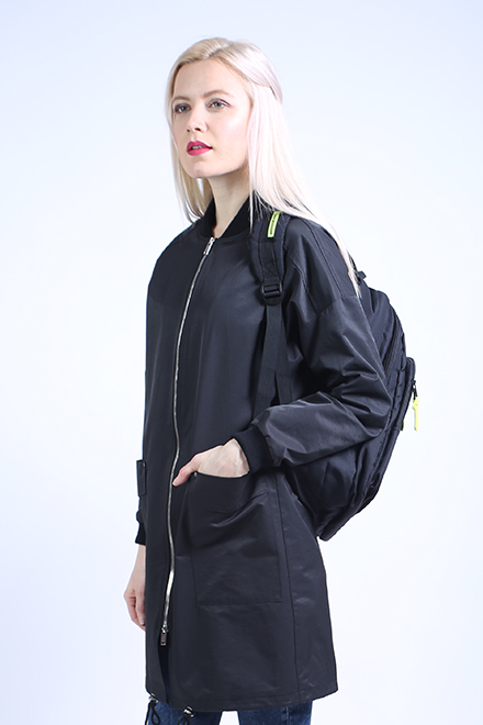 Плащ-бомбер молодежный со спущенными рукавами и трикотажным воротником-стойкой. Центральная застежка на металлическую молнию, накладные карманы с клапаном. Плащ прямого универсального силуэта- все для вашего удобства и неповторимого чувства стиля. Длина рукава (плечо+рукав) с манжетом - 73см. Длина по спинке - 89см. Рост модели 175.