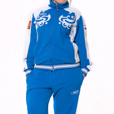 Трикотажный спортивный костюм с узорами, отлично подходит для занятий спортом и активного отдыха.